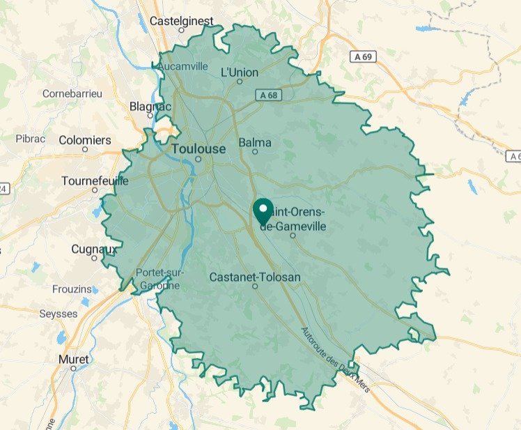 Toulouse, Portet-sur Garonne, Cugnaux, Labège & Saint Orens (zone de 18km)